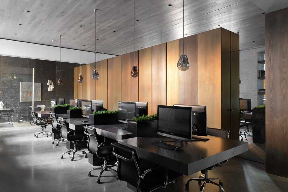 Прежде всего, следует придерживаться единой стилистики офиса. Очень эффектно и в то же время разумно будет решение оградить рабочее пространство каждого сотрудника специальными экранами со звукоизоляцией.