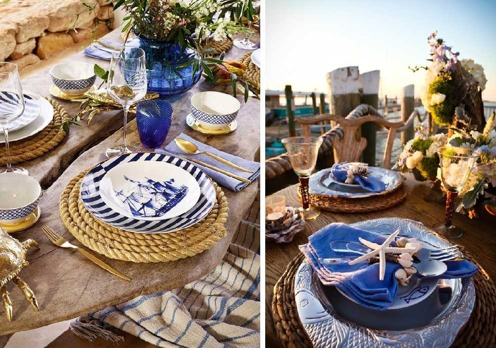 Синий цвет в оформлении стола поможет реализовать разные тематические идеи, такие как синева неба или голубизна горных рек. Незаменимым акцентом любого праздничного стола является букет сезонных цветов, которые создадут гостям хорошее настроение.