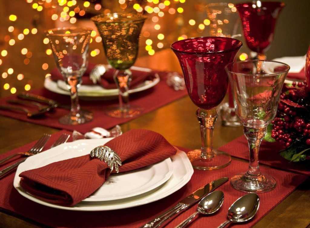 Нежность белого и страсть красного оттенка — красивое и традиционное сочетание контрастов. Оно никогда не выходит из моды и довольно простое в оформлении. Стол застилается красной скатертью, могут быть белоснежные салфетки с красными кольцами или наоборот, красные салфетки на белом фоне.