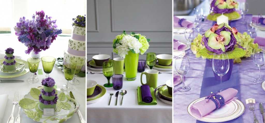 Для создания умиротворённой и романтической обстановки для двух человек сервировку и декорирование стола выполняют в фиолетовых оттенках. По некоторым утверждениям, фиолетовый — цвет творческих людей, он благоприятствует созданию обстановки для тихого общения, успокаивает после напряжённого трудового дня.