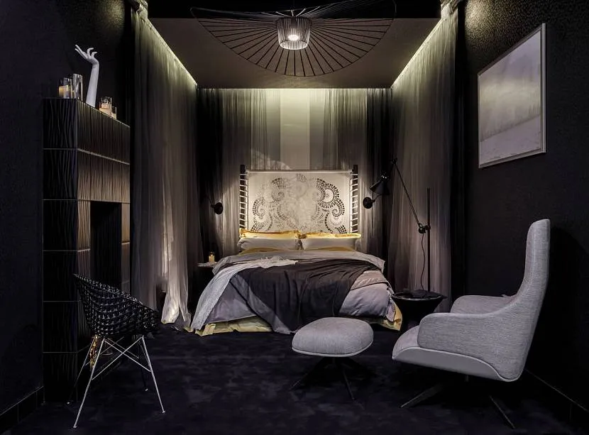 Черный интерьер для взрослой спальниИсточник batimat-rus.com