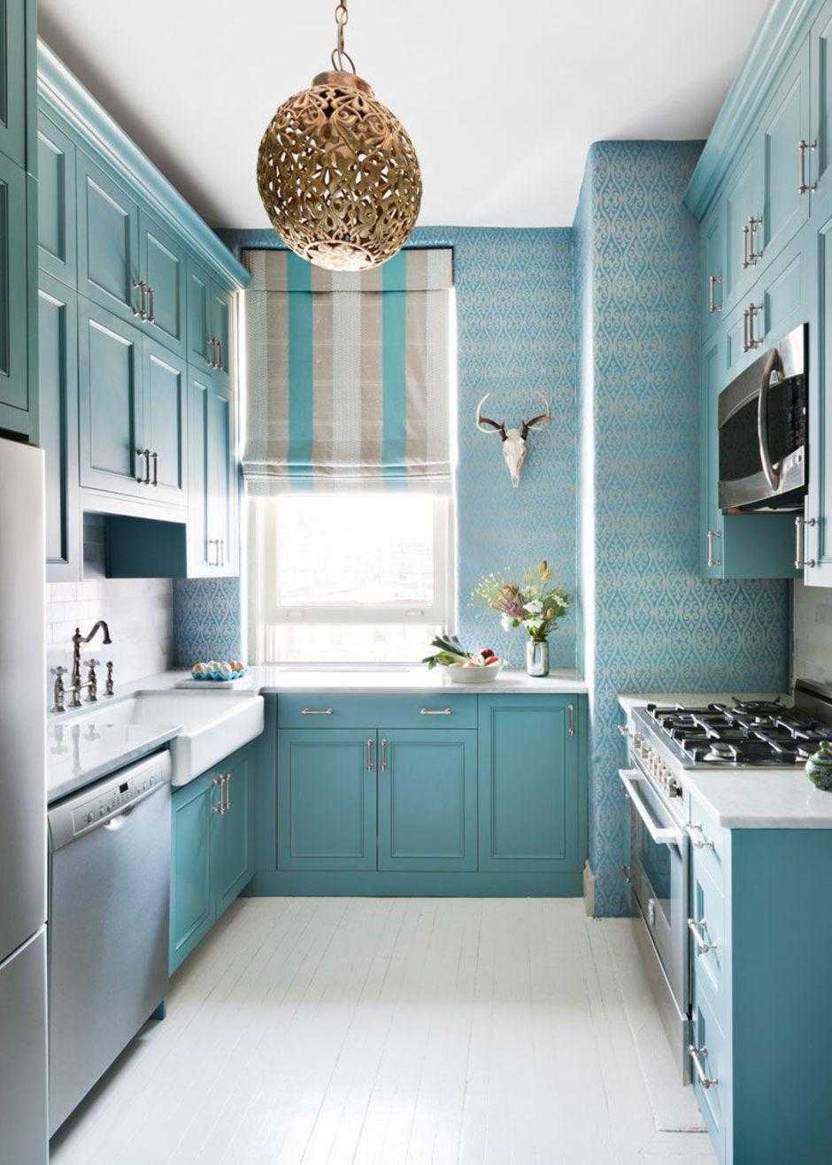 Кухня, выполненная в цвете морской волны, как нельзя лучше подходит для комфортного пребывания хозяйки во время приготовления пищи. К тому же, мебель и аксессуары этого цвета создадут в интерьере кухни уютную атмосферу для семейных обедов.