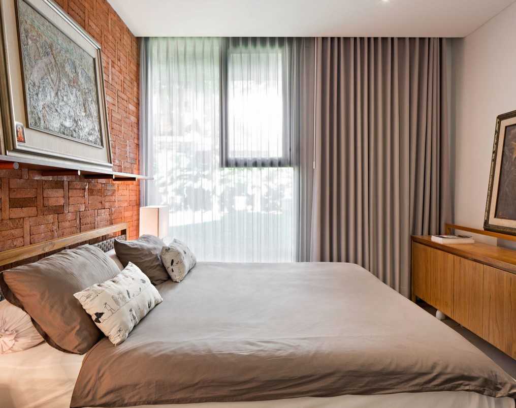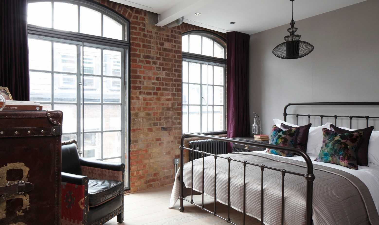 Красный кирпич в интерьере спальни
