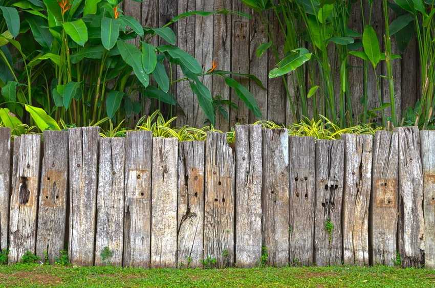 Горбыль тоже пойдет в дело, если приложить немного усилий. Это часть дерева, с отпиленной поверхностью. Также надо вкопать столбы, протянуть длинную перекладину и к ней прибивать горбыли.
