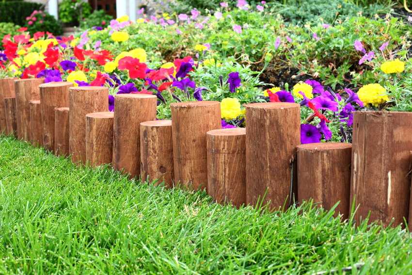 Декоративный заборчик из дерева используемый для ограждения клумб выглядит довольно элегантно