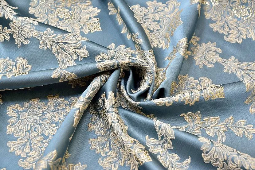 - Мотивы Востока – это ткани в темных расцветках с золотистыми или серебристыми узорами.