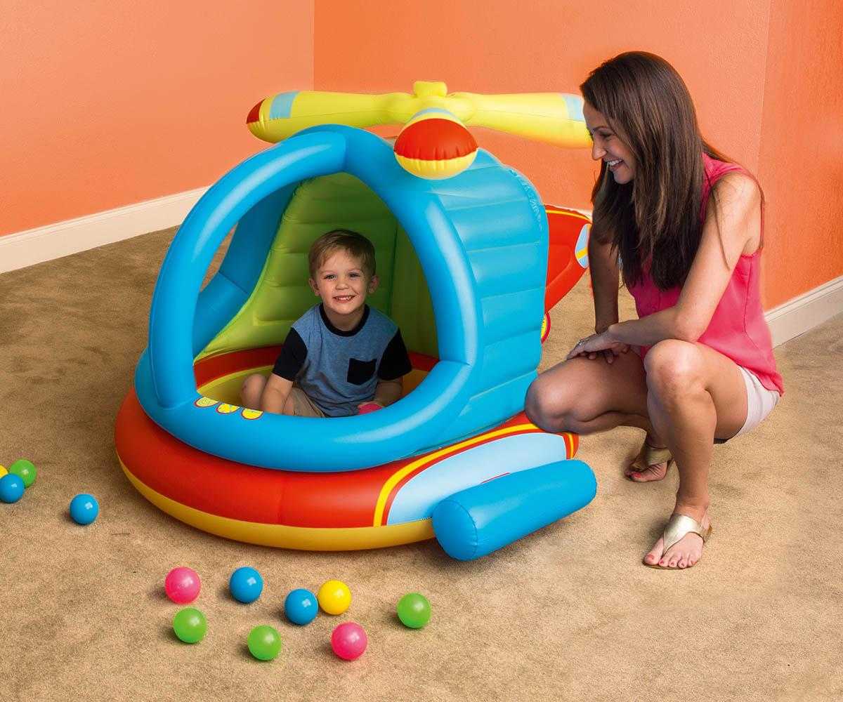 Надувной домик является бюджетным вариантом для самых маленьких. Преимущество этой модели в том, что даже если ребенок еще не научился ходить, он не сможет поранится об него. Так же часто в комплекте с домиком идут различные надувные горки, батуты и т. д. Минус в том, что конструкция довольно хрупкая, а значит ее легко можно порвать или проткнуть чем-то острым.