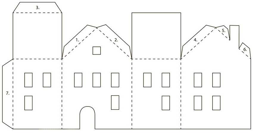 Две маленькие боковые части сверху обрезаются так, чтобы получились треугольники с двух сторон, направленные вершиной вверх. Треугольники сверху выравниваются вертикально, а продольные длинные элементы крышки крепятся к ним клеем или скотчем, образуя нижнюю часть ската крыши.