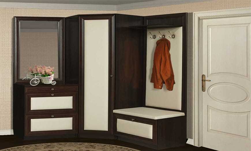 Уходя всегда удобно бегло осмотреть себя, поэтому зеркало. Обувь удобнее одевать сидя, а под сидушкой иметь открытое место для её хранения