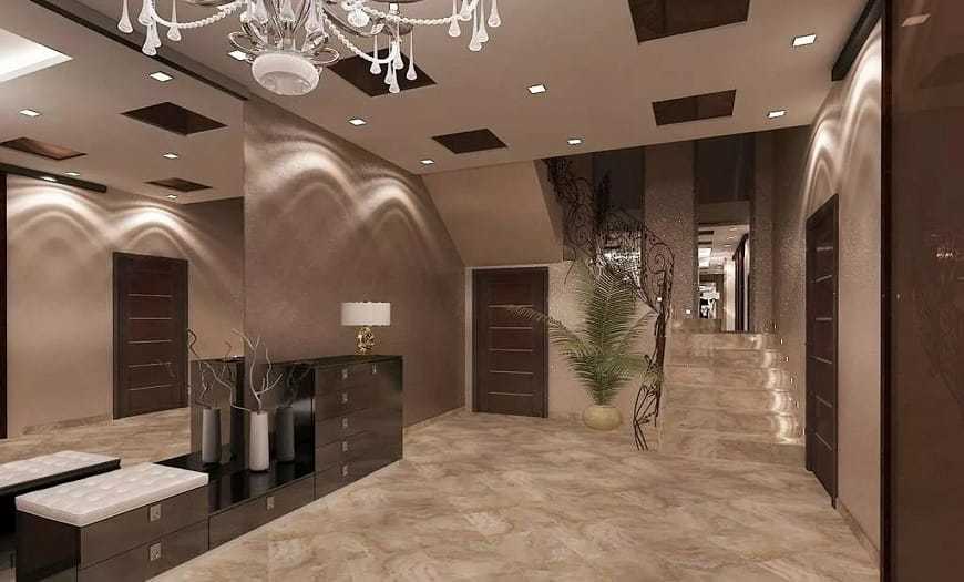 Крохотные коридоры необходимо освещать яркими светильниками. Одних настенных бра здесь будет недостаточно. Еще один вариант декора – зеркальный потолок. Но не каждый владелец способен привыкнуть к данному способу отделки.