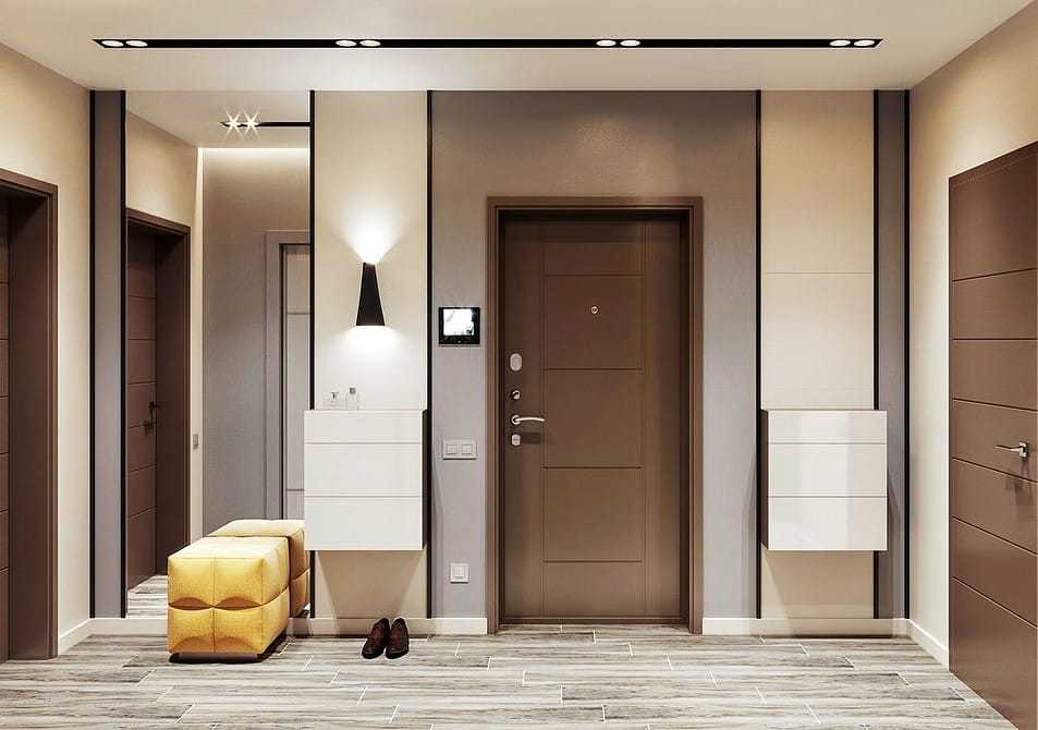 Так называемые «брежневки» имеют перед современными «хрущевками» неоспоримое преимущество. Их пространства у входа достаточно обширны. Поэтому там можно создавать любые интерьерные задумки.