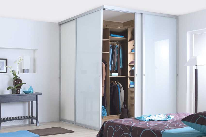 В комнате размером 18 квадратных метров рекомендуется установить гардеробную или выбрать шкаф-купе от пола до потолка.