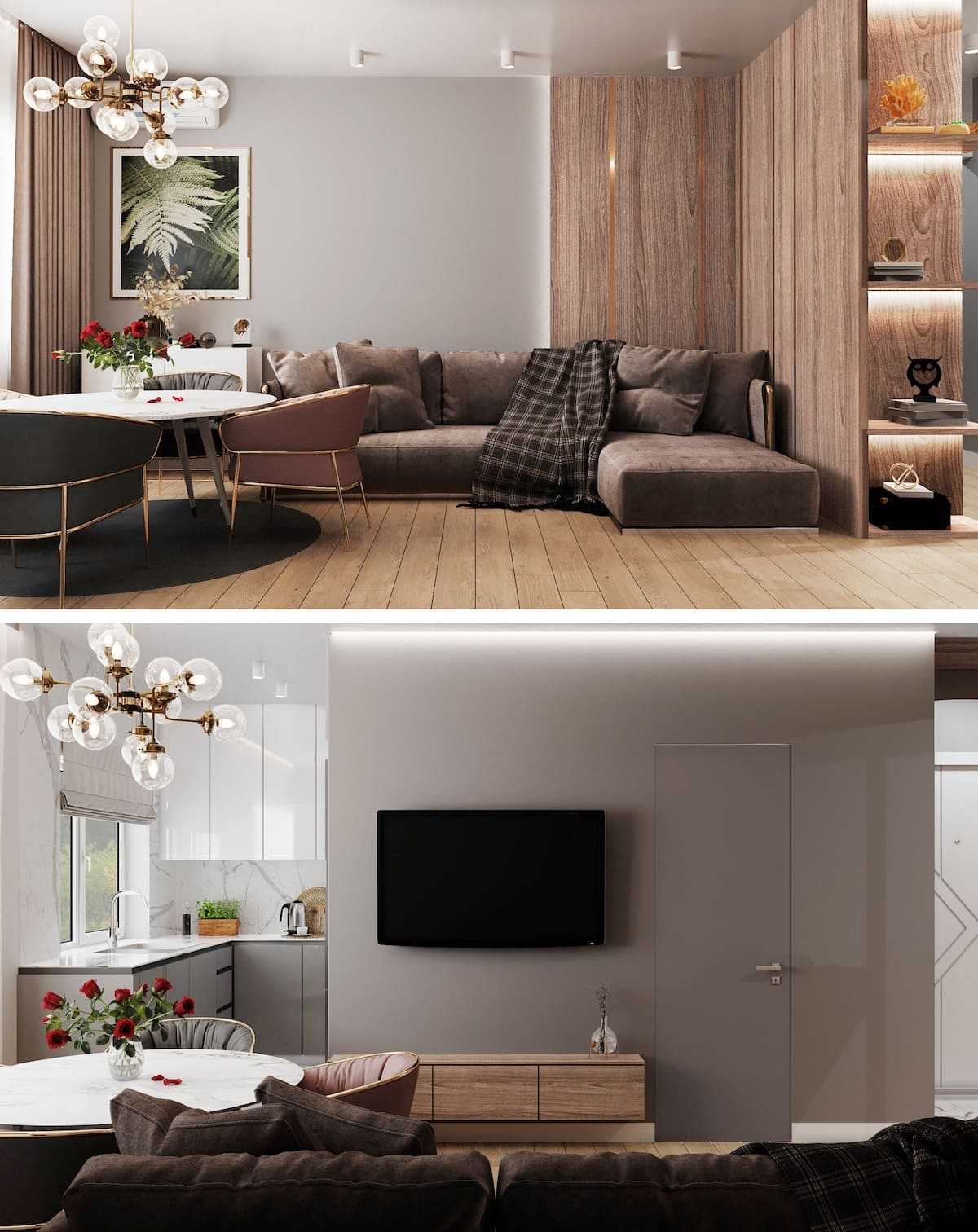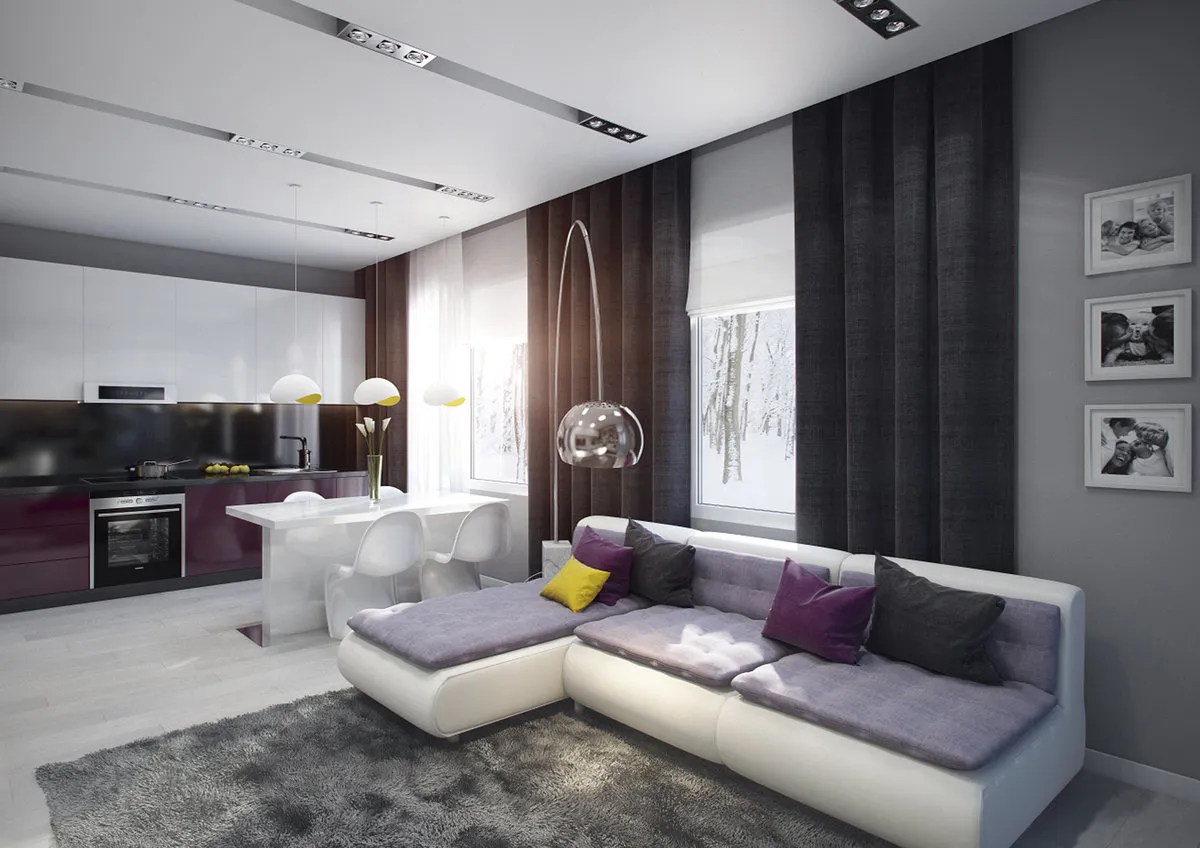 Перед выбором дизайна квартиры-студии следует подумать о зонировании пространства. Как вы хотите совместить комнаты? Это можно сделать следующими способами: