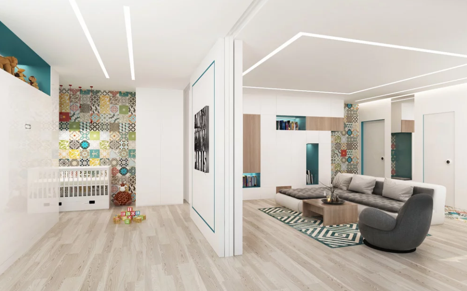 Всегда стремятся сохранить функциональность помещения, и оставить простор для свободного перемещения проживающих. Для успешного проекта подходят: