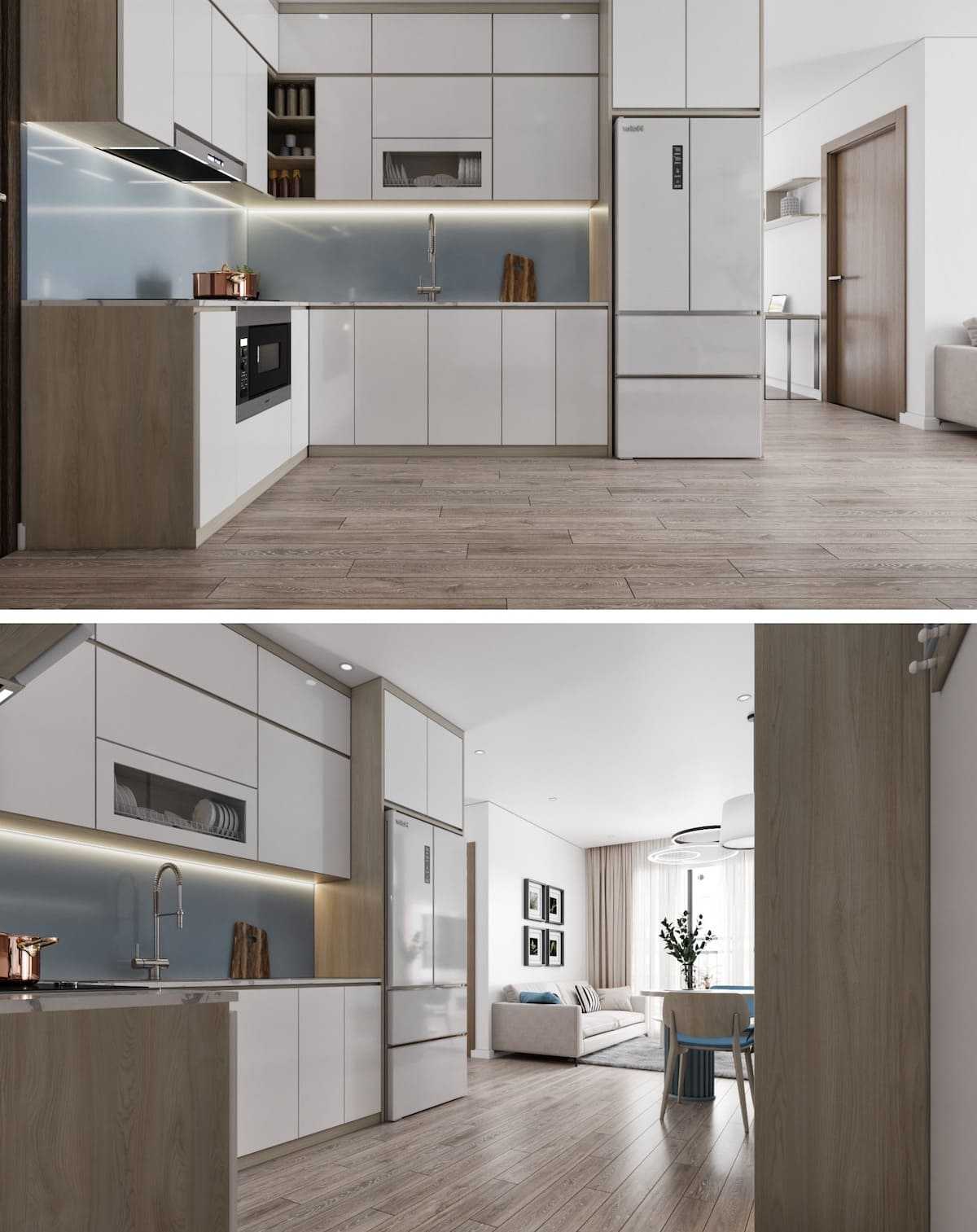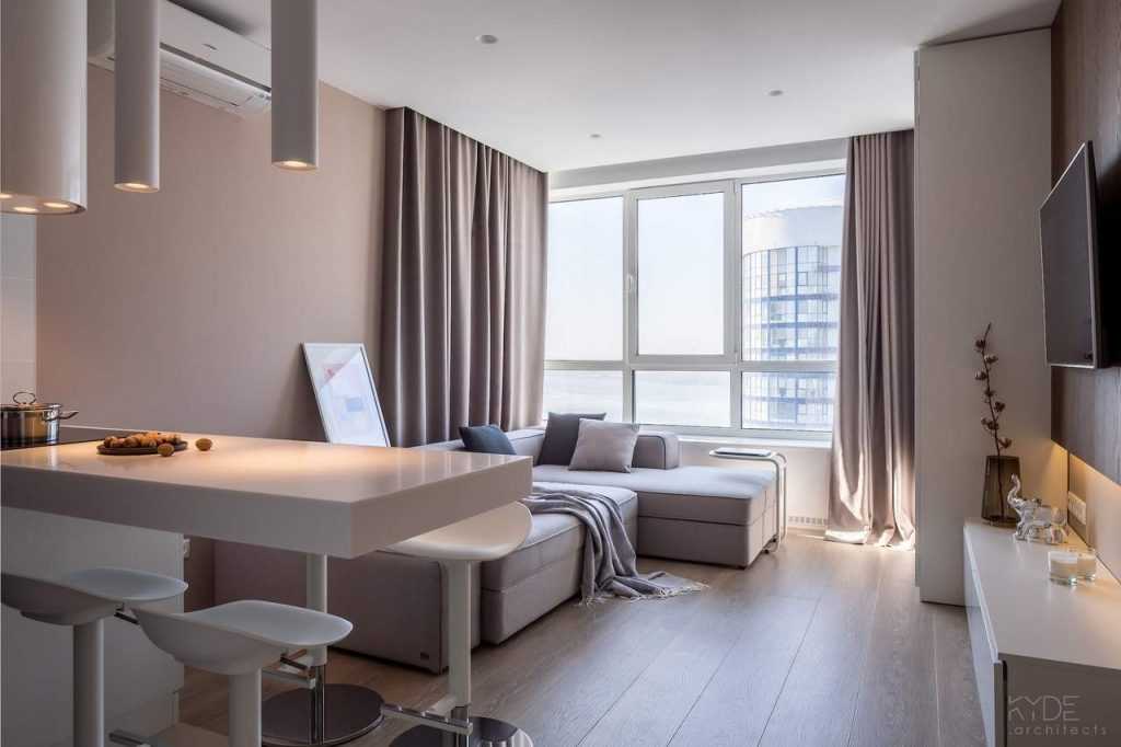 Это будет комфортный вариант для проживания одного человека и, возможно, для пары. Но для семей с детьми или для семьи, в которой есть один фрилансер, которого рабочее настроение частенько настигает именно ночью, это будет настоящей проблемой. Кухня-студия предполагает, что все домочадцы будут жить в одном режиме: просыпаться и отходить ко сну в одно время.