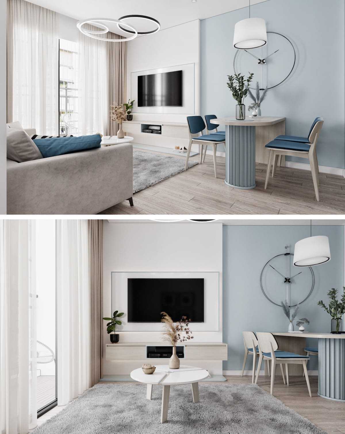 Еврокомиссия — это промежуточный вариант между большой однокомнатной квартирой и стандартной двухкомнатной квартирой. Такая планировка распространена в новых домах. Этот дизайн имеет свои особенности, так как самые большие помещения — это гостиная, столовая и кухня. Вторая отдельная комната меньше по размеру.