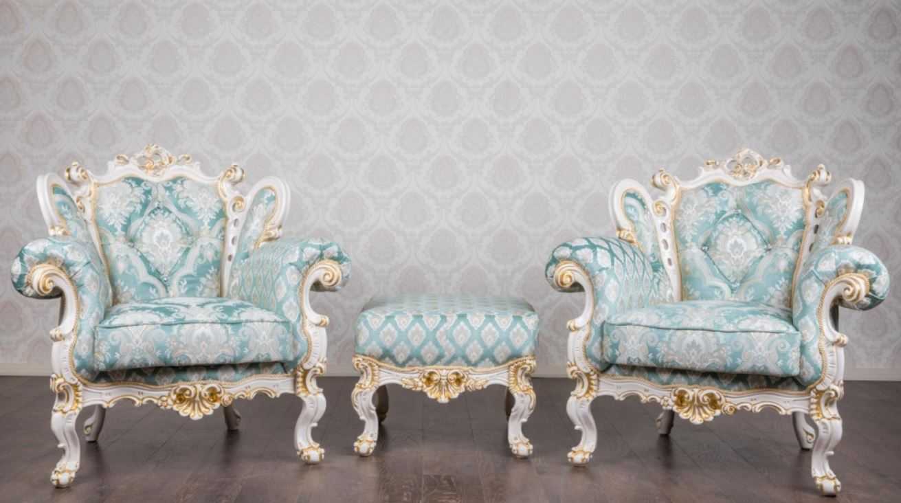 Кресло, как и диван в стиле барокко отличается вычурностью и изяществом. Как правило, это массивные модели с золоченой или серебристой резьбой, дорогой обивкой и отделкой. Преимущественные оттенки – синий, голубой, серебристый, бежевый, бордо, пурпур и др.