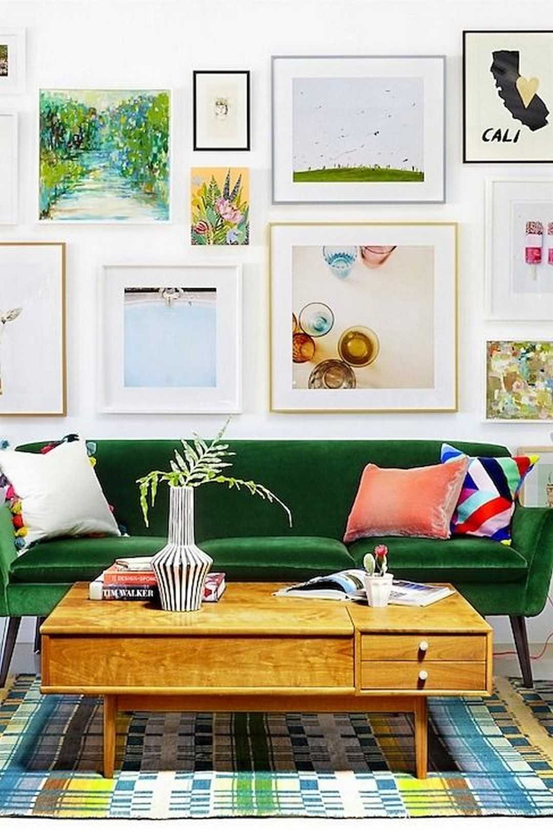 6. Семейные фото располагают на уровне глаз сидящего человека. А вот крупные изображения лучше поместить повыше на стене в отличие от мелких.