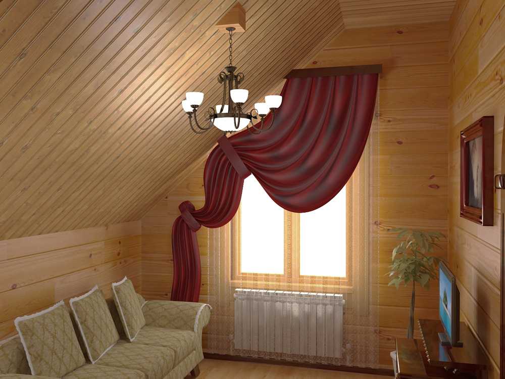 Интересное расположение имитации бруса в отделке мансардного этажа
