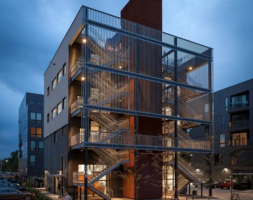 Они имеют брутальный внешний вид. Дома возводятся с применением простых и практичных материалов. Их внутреннее пространство не делится перегородками. Присутствуют высокие потолки, большие окна.