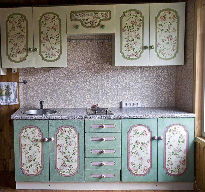 Для таких кухонь характерно наличие старинного комода, круглого деревянного стола на ножках, миниатюрных шторок на окнах. Неотъемлемой частью кухонь являются многочисленные элементы декора: горшочки, корзины, стеклянные бутылки, расписные тарелки и т.д.
