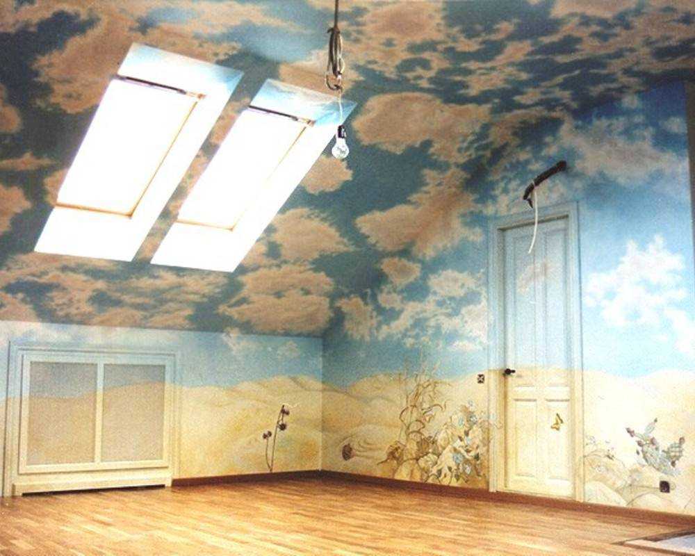 - Потолок и стены. В отделке используются преимущественно легкие материалы, натурального характера.
