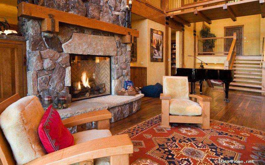 В горных местностях в конструкции дома и в интерьере основательность подчеркивалась при помощи камня.