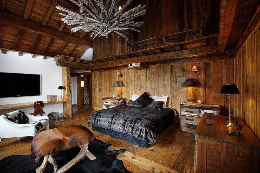 Уютный и натуральный альпийский стиль шале в интерьере спальни