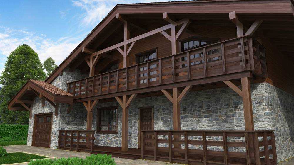 - под выступами располагаются балконы, террасы или веранды из дерева, украшенного резьбой;