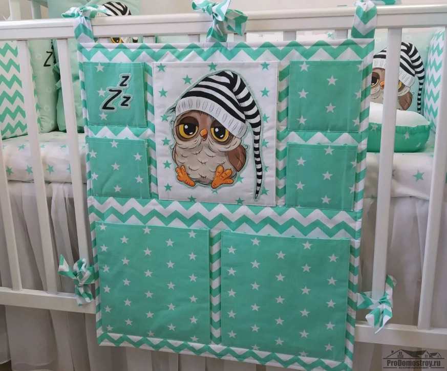 К примеру, можно оформить мягкие элементы кроватки в соответствии с любимым мультиком ребенка или сказочным персонажем. Интересными вариантами станут бортики-органайзеры с карманами, в которые можно легко убрать какие-то мелкие мягкие игрушки. Так у малыша появится свое укромное местечко, где он сможет прятать свои секреты.