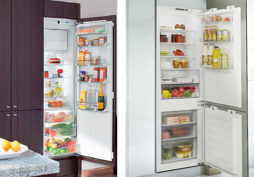 Наиболее распространены две конструкции шкафа для встраиваемого холодильника. Как встроить холодильник в шкаф — во многом определяется схемой встройки от производителя: