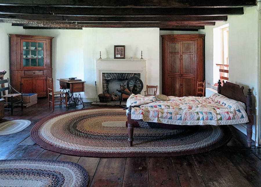 Начните с выбора материалов, которые станут фоном для композиции. Дерево лучше всего подходит для пола, и вы также можете воспользоваться его визуальными преимуществами, выбрав декоративные потолочные балки. Колониальная спальня станет уютнее, если оклеить одну из стен обоями. Идеально подойдет облицовка мелкими цветочками.