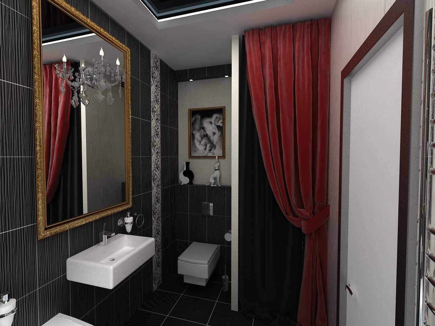 Контрастные сочетания цветов в ванной комнате.