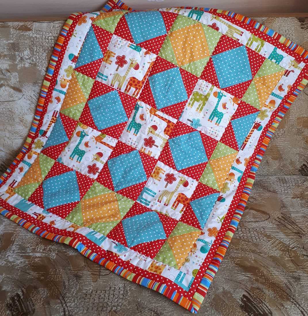 Детское лоскутное одеяло, украшенное изображениями различных животных и кусочками ткани разного цвета, может послужить и в образовательных целях. Детки, играя, будут изучать их названия.