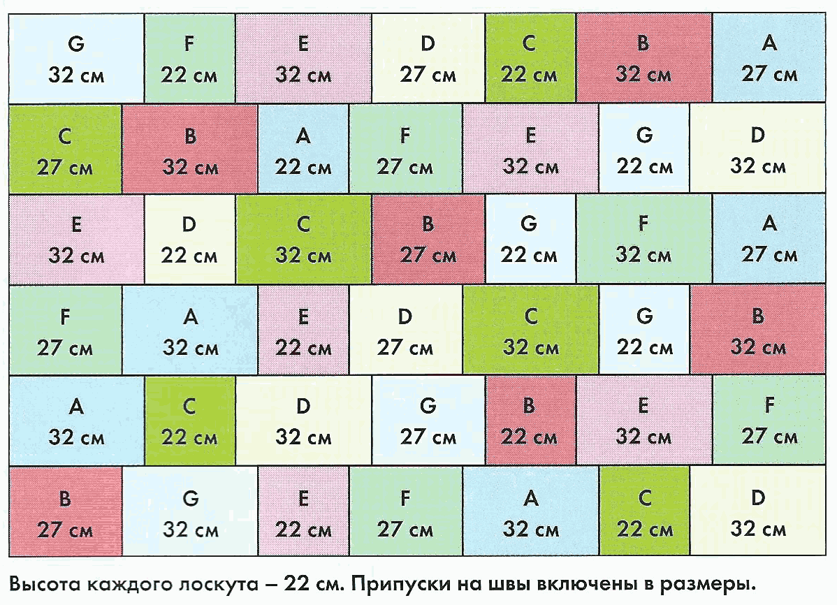 - в горошек (В) – пять полос 16,5 см на 27 см;