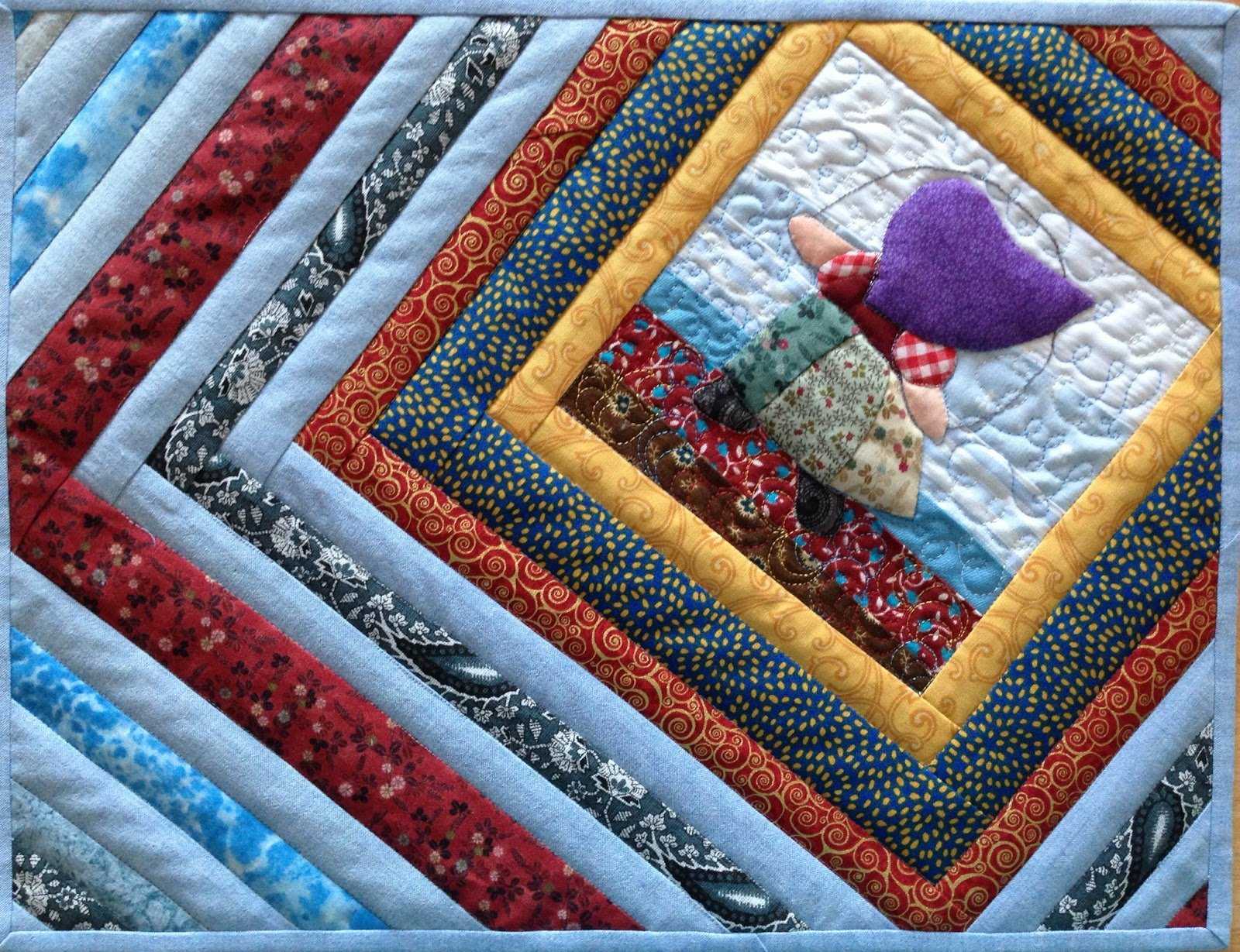 - Техника квилтинг имеет различие с традиционным в том, что каждый лоскуток сшивается остальными различными видами строчек с помощью швейной машинки. Зачастую при создании одеяла ткань дополняется подкладкой (ватин либо иной укрепляющий материал).