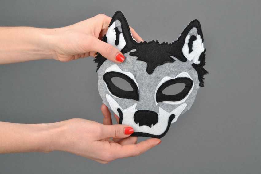 Серенький волчок встречается во многих детских сказках, поэтому нередко мальчишки хотят предстать в таком образе. Как и во многих других случаях можно воспользоваться готовым шаблоном для вырезания и при необходимости раскрасить его либо сделать самостоятельную объёмную маску. Помимо вырезания готового шаблона здесь нужно будет аккуратно склеить все части мордочки, сделать крепление для головы.