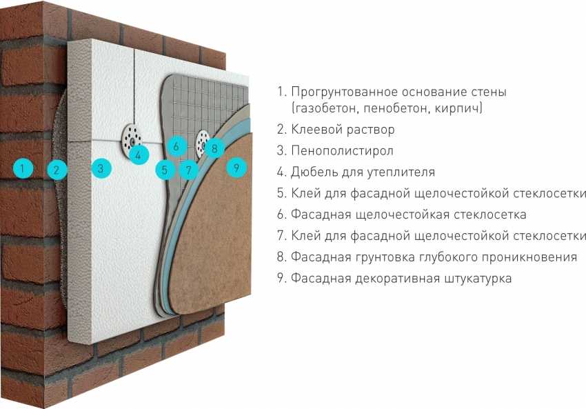 Если задумана облицовка камнем, кирпичом или плиткой, то производится оштукатуривание утеплителя с использованием стеклосетки и только потом приступают непосредственно к отделке.