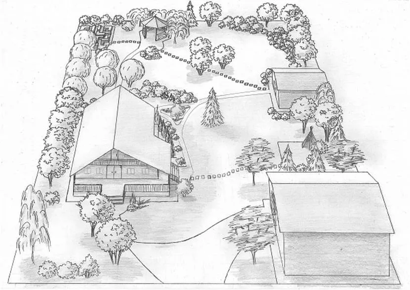 Главная постройка — жилой дом. Владелец определяет, сколько этажей, куда будут выходить окна. Если вблизи есть природные объекты, окна второго этажа должны открывать вид на них.