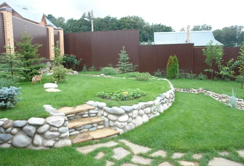 - Декоративные. Такие конструкции возможны на плоских и слабо-рельефных участках. От них не требуется особая прочность, они служат акцентом ландшафтного дизайна.