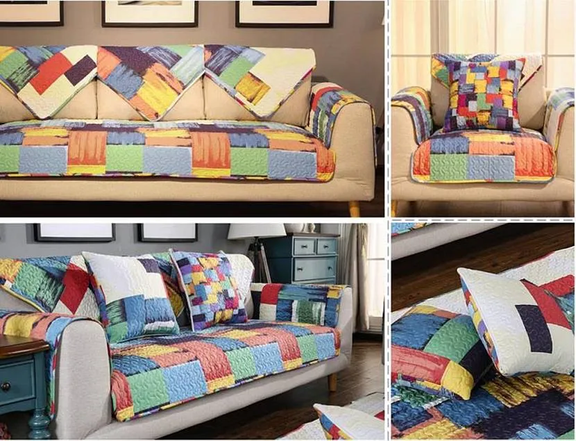 В гостиную и детскую стоит приобрести, к примеру, цельные гобеленовые накидки или выполненные в технике пэчворк (сшитые из лоскутов) – то есть, устойчивые к линьке, выгоранию под воздействием солнечных лучей и внешнему механическому воздействию.