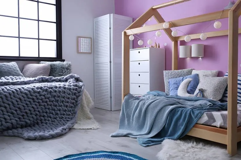Цветовое решение стен – к ярким обоям лучше приобрести однотонное покрывало, либо с рисунком, совпадающим с ними по цвету, если стены нейтральные, а обои без рисунка – плед подойдет практически любой.