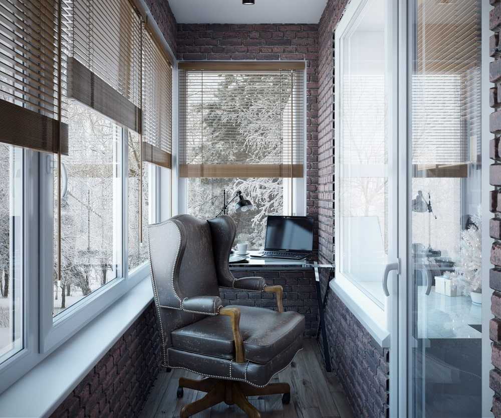 - На балконе. В случае если лоджия имеет достаточные габариты, ее можно переоборудовать под уютный кабинет, отличающийся замкнутой приватностью и большим количеством естественного света.