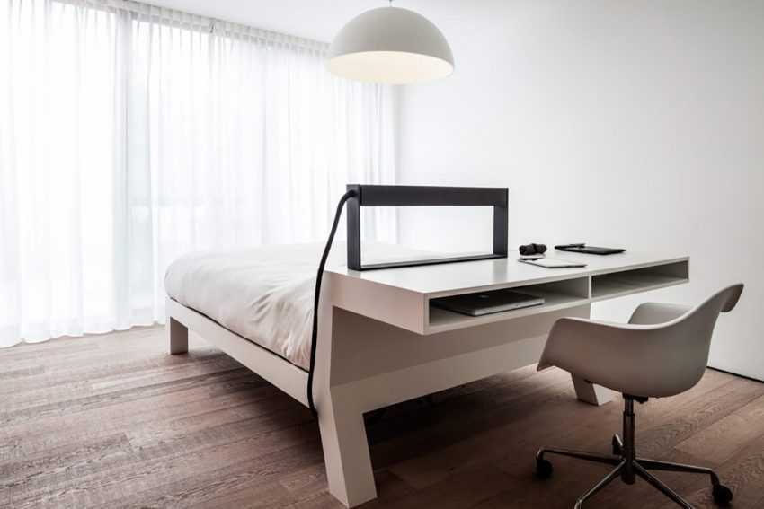 Рабочий кабинет в спальне имеет смысл разместить в случае, если площадь дома или квартиры весьма ограничена. Наполнение помещения трансформируемой мебелью позволит эффективно использовать пространство не только для ночного отдыха, но и для дневной работы.