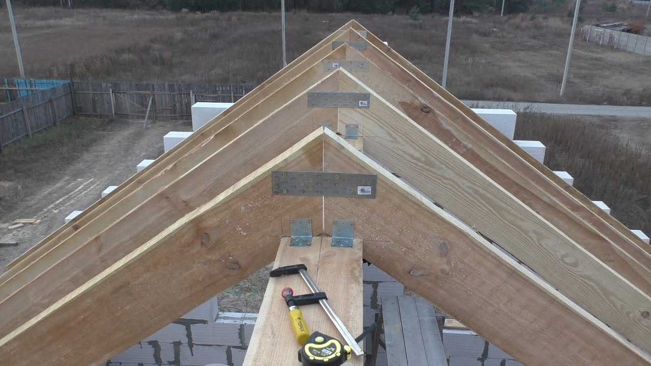 Сперва необходимо собрать первую пару стропильных ног, которая будет своеобразным шаблоном для остальных. Порядок выполнения работ следующий: