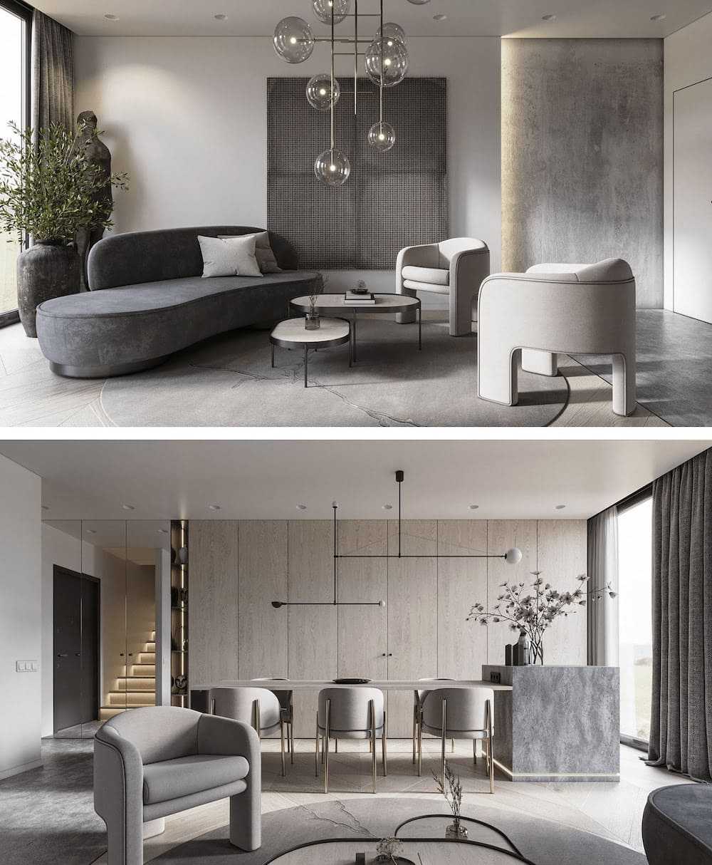 Аксессуаров должно быть немного, чтобы гамма декора наличествовала только двумя-тремя красками. Благодаря такой сдержанности современная серая гостиная получается без какого-либо визуального груза и остается современной по умолчанию.