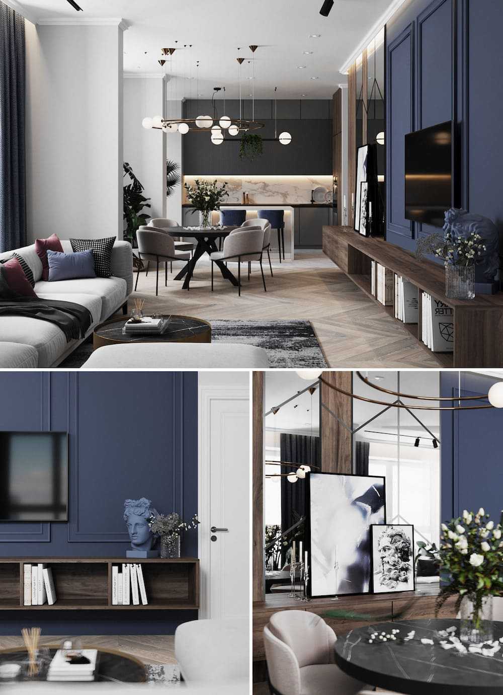 Но пользоваться им нужно осторожно, так как можно потерять свет. Темно-синий рекомендуется для деталей или акцентов, а для больших площадей выбирайте бирюзовый или голубой