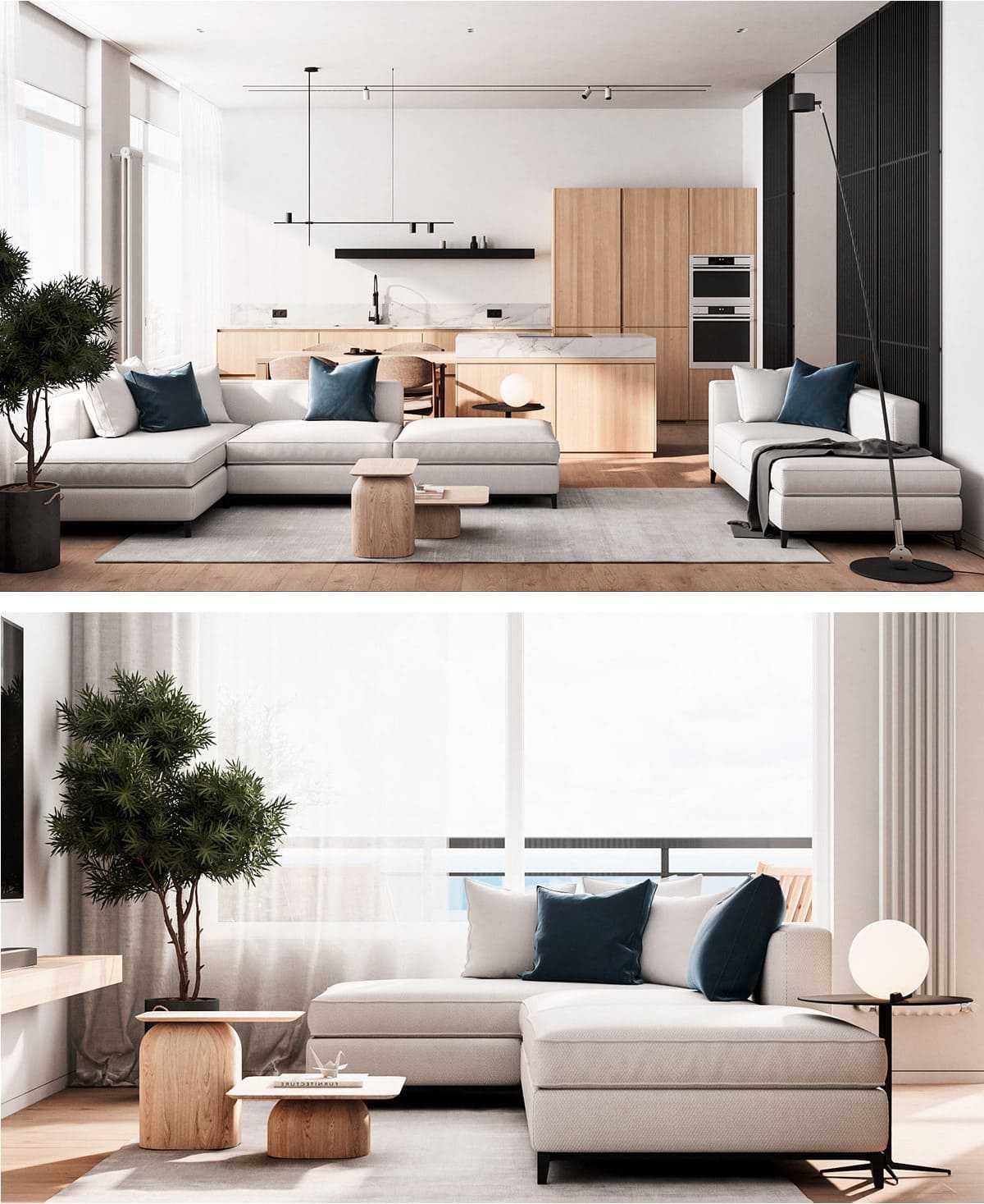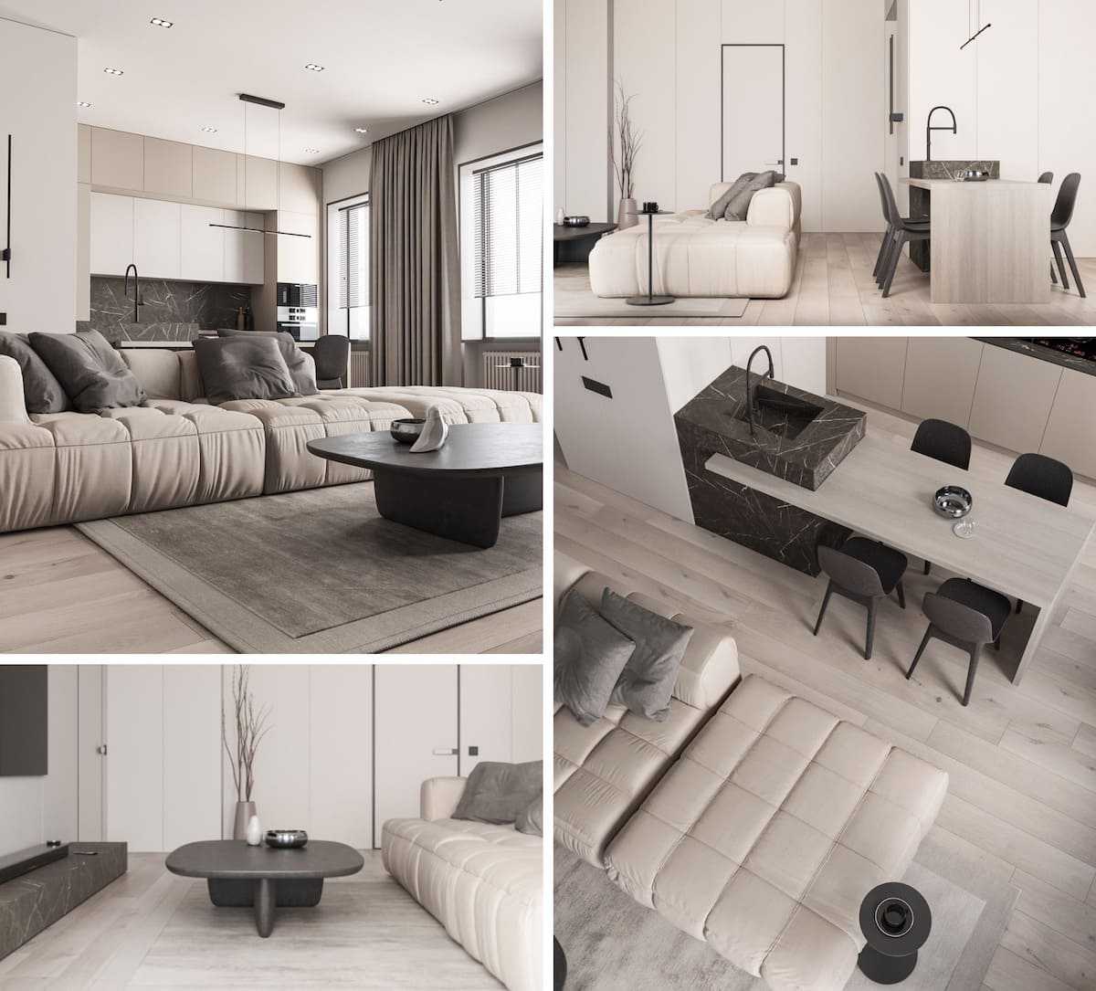 В светлых кухнях и гостиных есть и свои минусы — такой дизайн менее рационален с точки зрения требований к уходу. Но, если подобрать правильные материалы, которые не слишком требовательны к очистке, можно не переживать за возможные загрязнения.