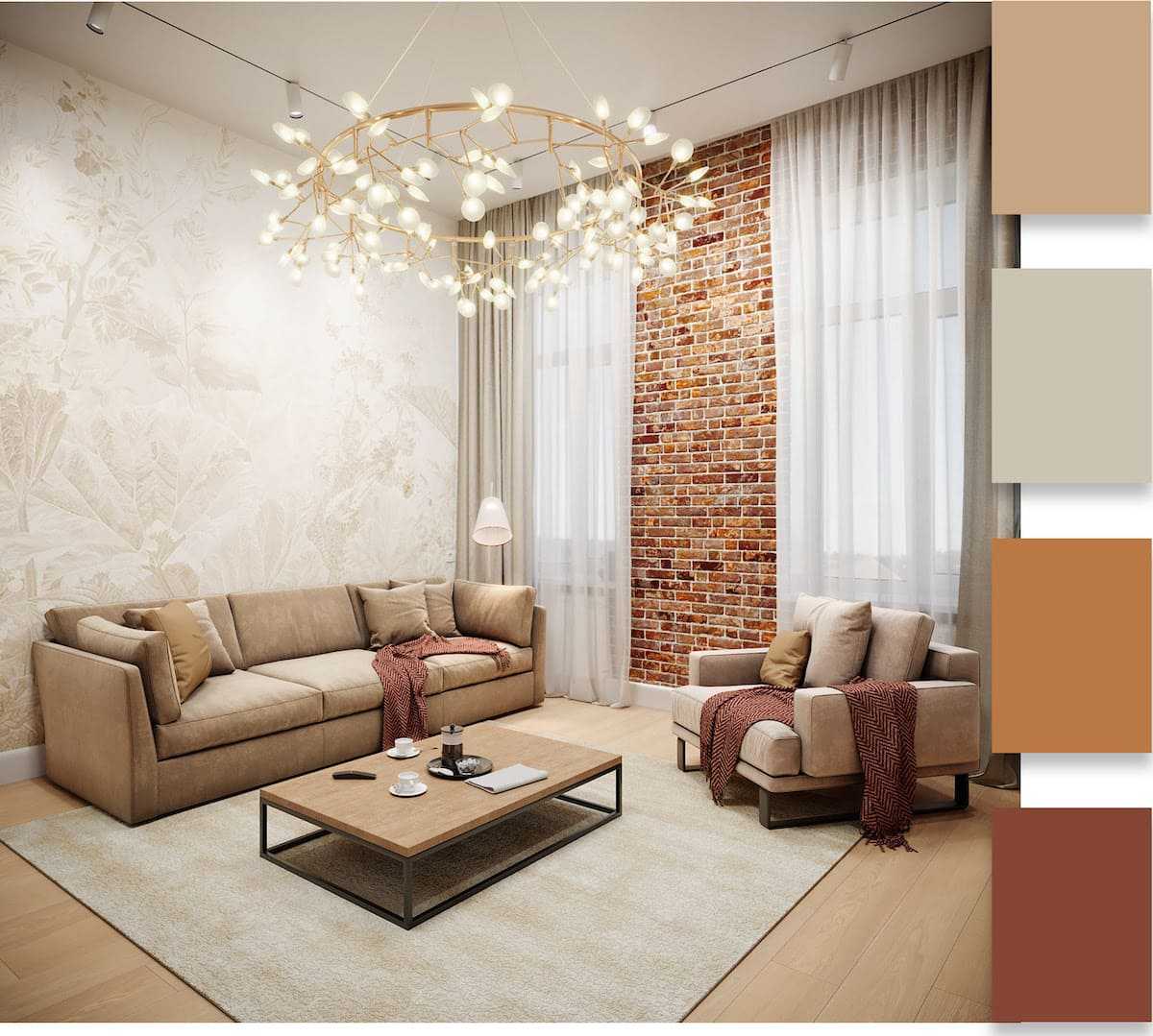 Стоит прислушаться к мнению опытных психологов, которые говорят о том, что мужчины склонны выбирать приглушенно-коричневый для оформления интерьера. И чтобы прийти к обоюдному согласию между членами семьи в процессе определения цветового сочетания, можно предложить воплотить дизайн интерьера гостиной в коричнево-бежевых тонах. А при создании личного пространства можно себя уже не ограничивать в желаниях.