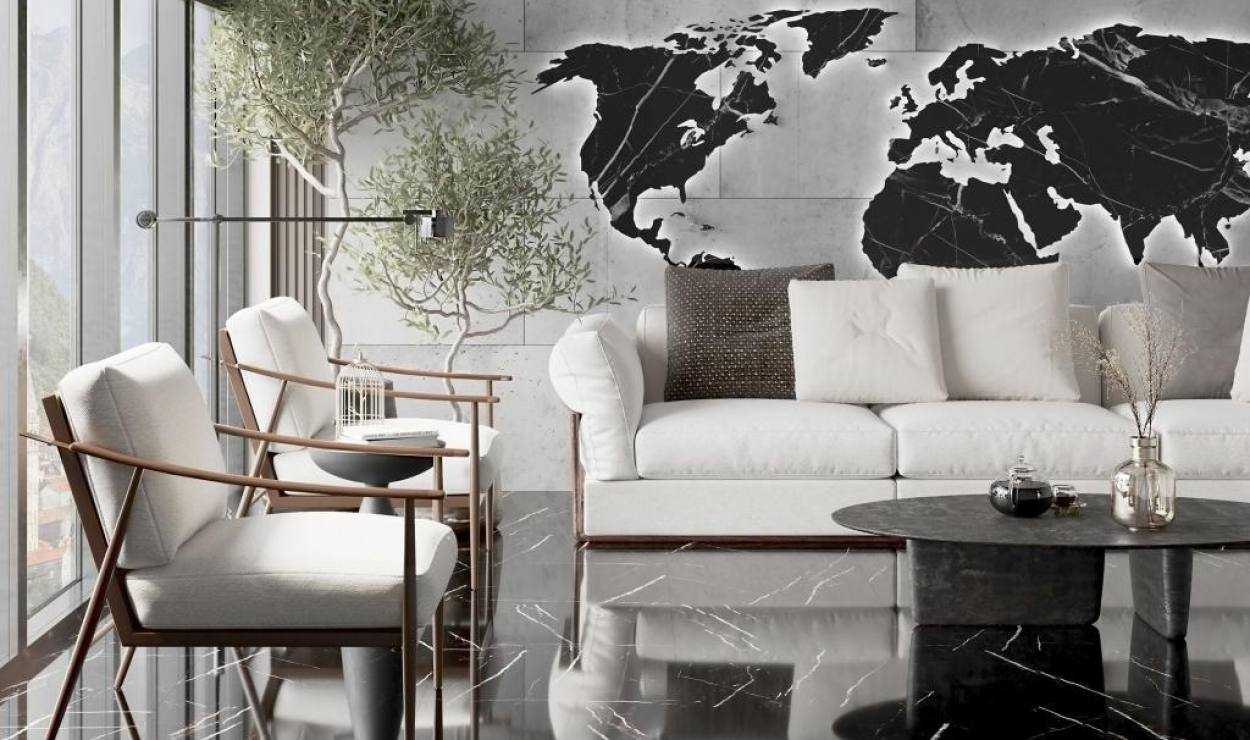 Данный стиль предполагает строгость и совсем небольшое количество деталей и украшений. А к лаконичному и свободному от лишнего интерьеру необходимо подобрать соответствующее напольное покрытие. Однотонный темный пол является наилучшим решением, нежелательно присутствие даже еле различимых узоров.